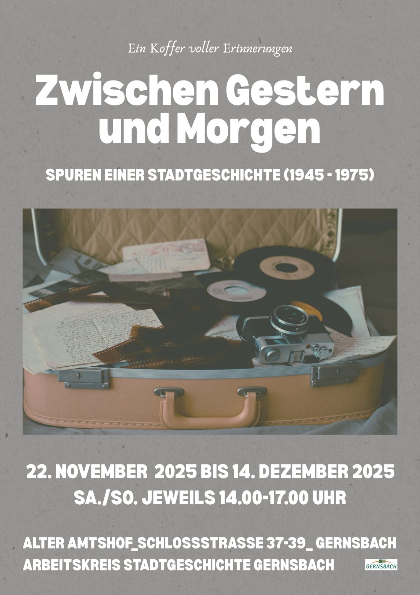 Die Gedenkfeier zur Erinnerung an die Deportation von Gernsbacherinnen und Gernsbachern jüdischen Glaubens wird am Mittwoch, 22. Oktober 2025 um 18 Uhr auf dem Salmenplatz stattfinden. Der Arbeitskreis Stadtgeschichte Gernsbach lädt dazu herzlich ein. Die Musikschule Gernsbach mit Ulrike Merz … weiterlesen “Gedenken zur Deportation”