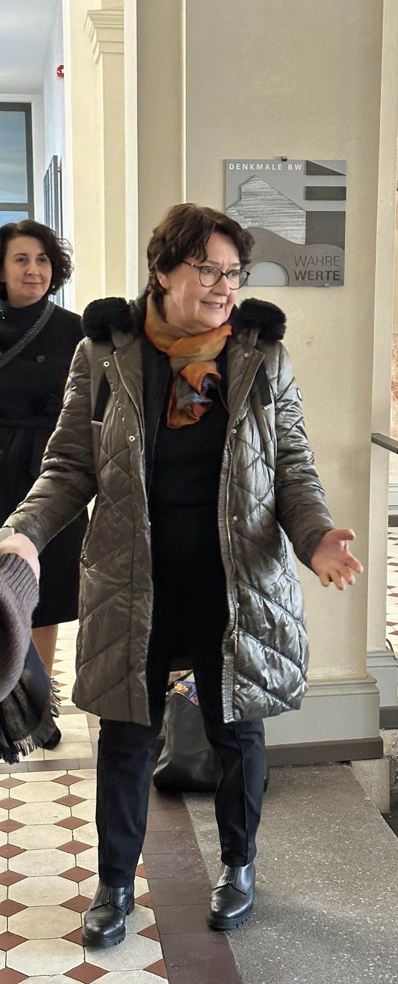 Ehrenamtliche Denkmalpflegerinnen und -pfleger aus ganz Baden-Württemberg waren zu dieser Führung eingeladen. Die Begrüßung erfolgte durch Barbara Saebel, Abgeordnete des Landtags Baden-Württemberg, Sprecherin für Denkmalschutz und Kulturerbe der Grünen im Land. Dabei ging sie insbesondere auf „denkmalnetzBW“ ein, das landesweite Netzwerk von im Denkmalschutz und in der Denkmalpflege hauptamtlich sowie ehrenamtlich Tätigen. Das Projekt wird aus Landesmitteln finanziert, die der Landtag Baden-Württemberg beschlossen hat und aus Fördermittel aus Erlösen der Staatlichen Toto-Lotto GmbH Baden-Württemberg getragen wird.
